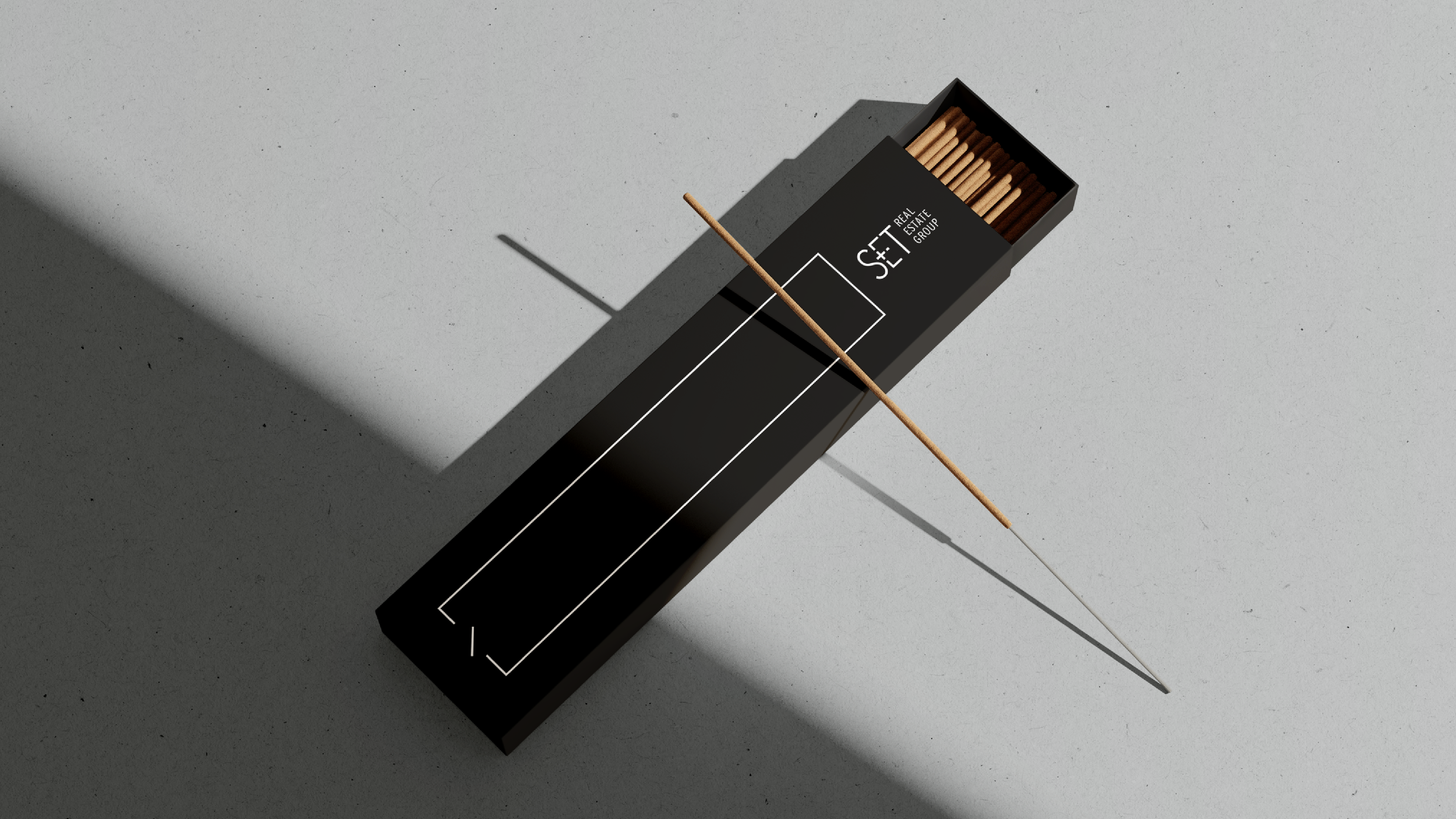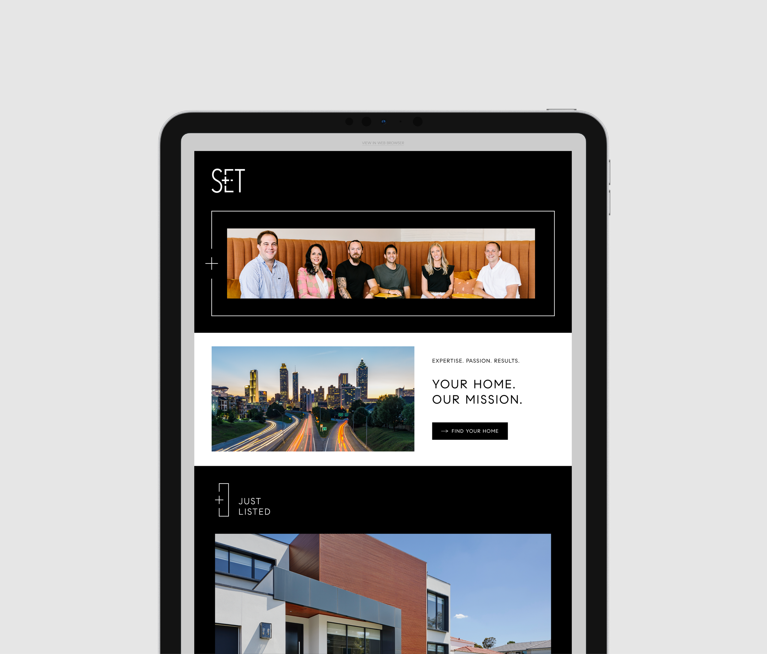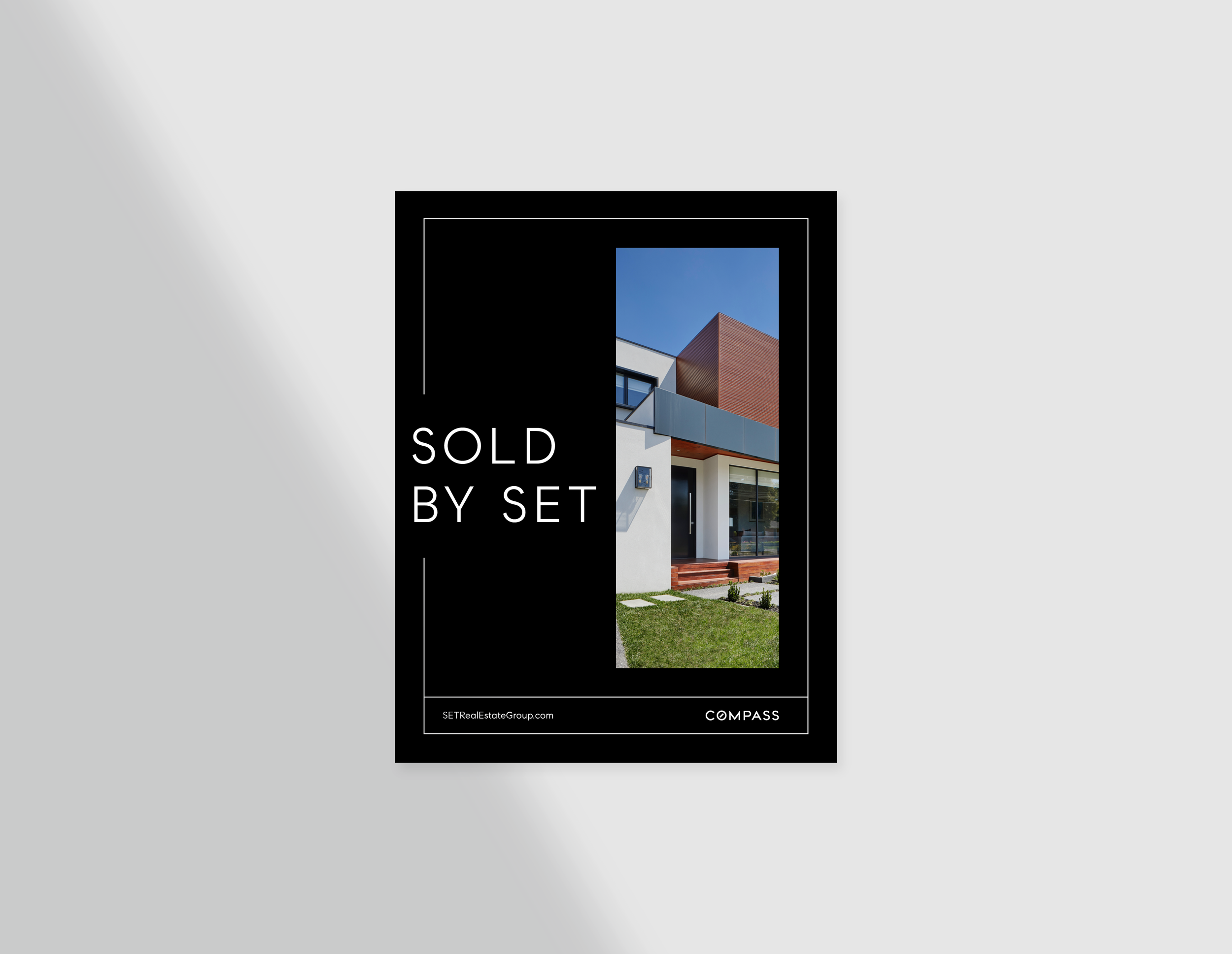 Atlanta’s SET Real Estate Group found Compass’ black and white brand colors and minimal design approach agreeable. The brief, then, was to introduce an overarching element or two that was reflective of SET’s expertise and style. The group’s inclination towards a contemporary and geometric style of home helped to inform the boxy line element that’s come to be the notable aspect of their rebrand.